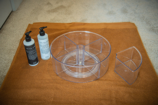 The reason I also love this product is that it is super space saving, no more having your bottles strewn around your bathroom sink, everything is in one streamlined (and swivelling) place.